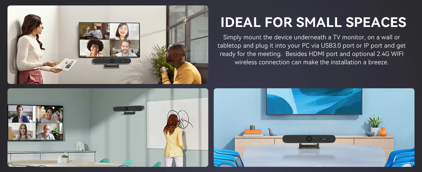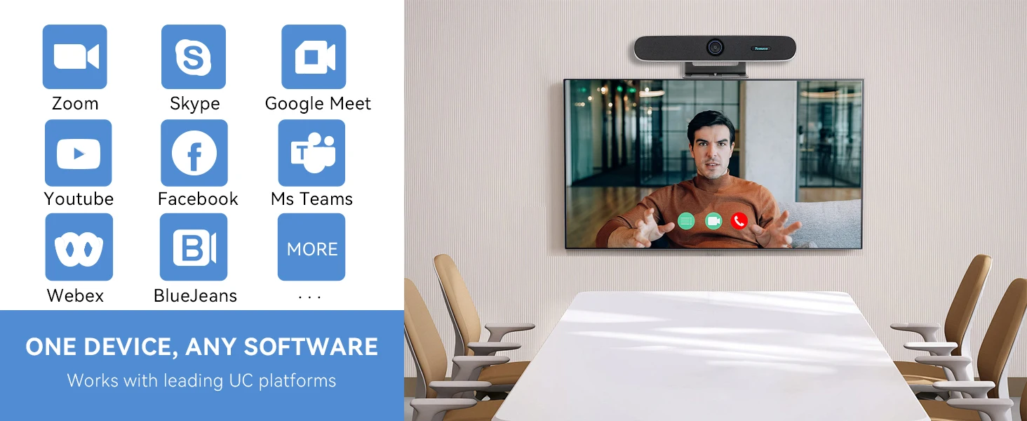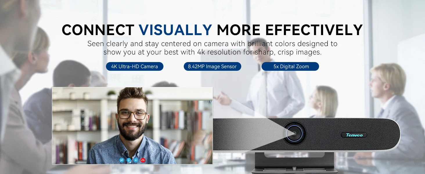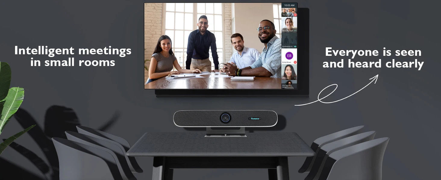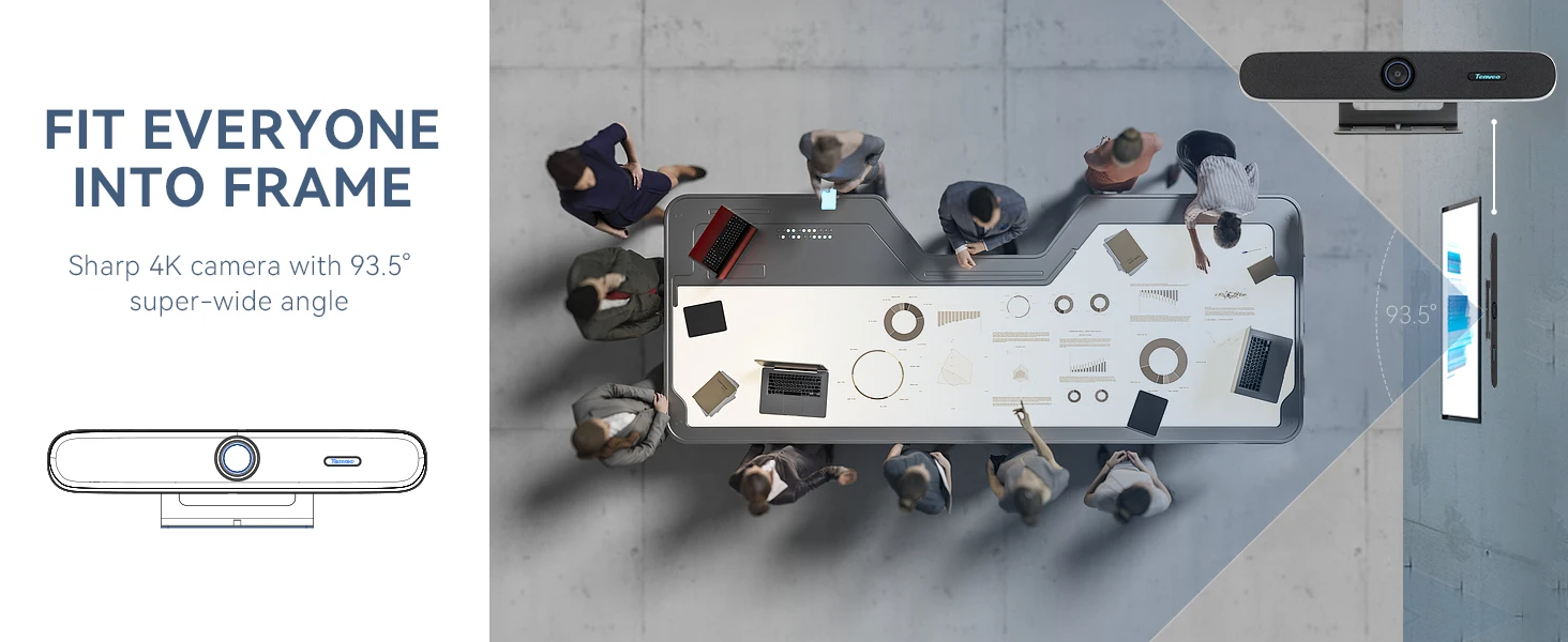 TENVEO PC Sound bar Audio and Video Integrated Conference Camera Intelligent Framing Wide Angle 4K Video Soundbar