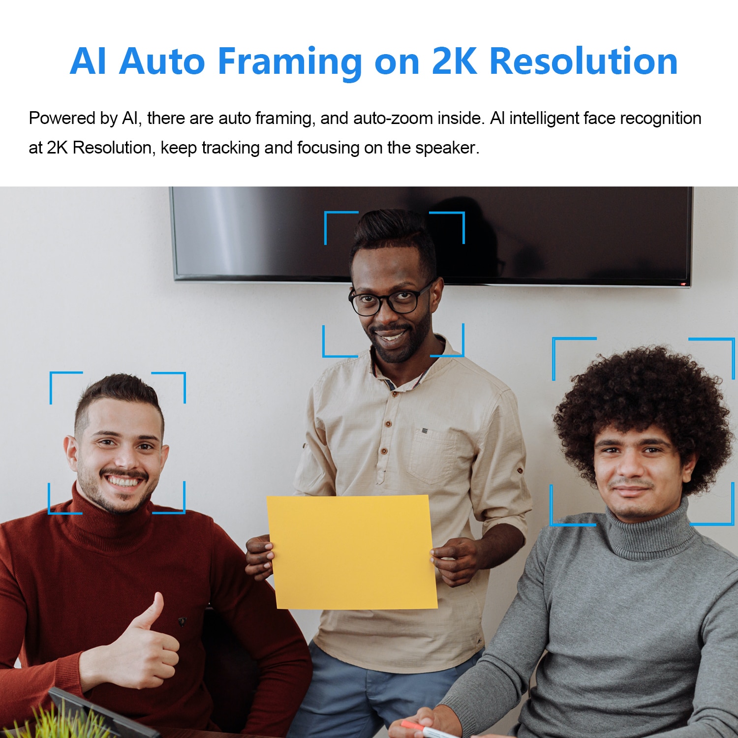 Ai Auto Framing on 2K Resolution, keep tracking and focusing on the speaker