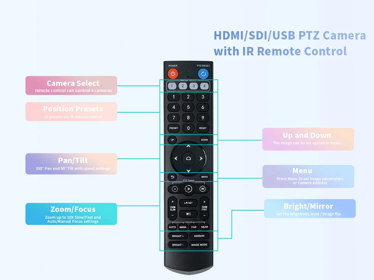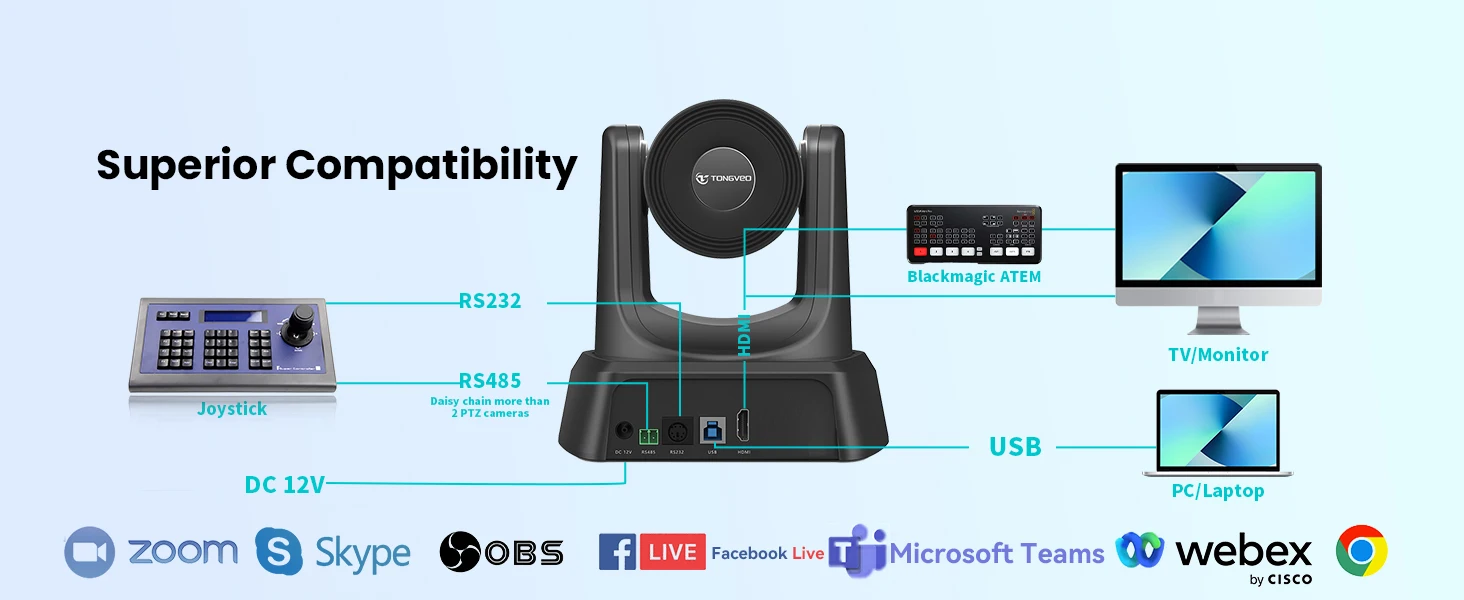 * Support Visca, Pelco-P, and Pelco-D protocol, RS232/RS485 Camera Control
