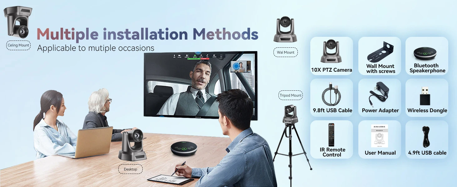 * Support ceiling mount, wall mount and tripod mount (Reverse mountable)