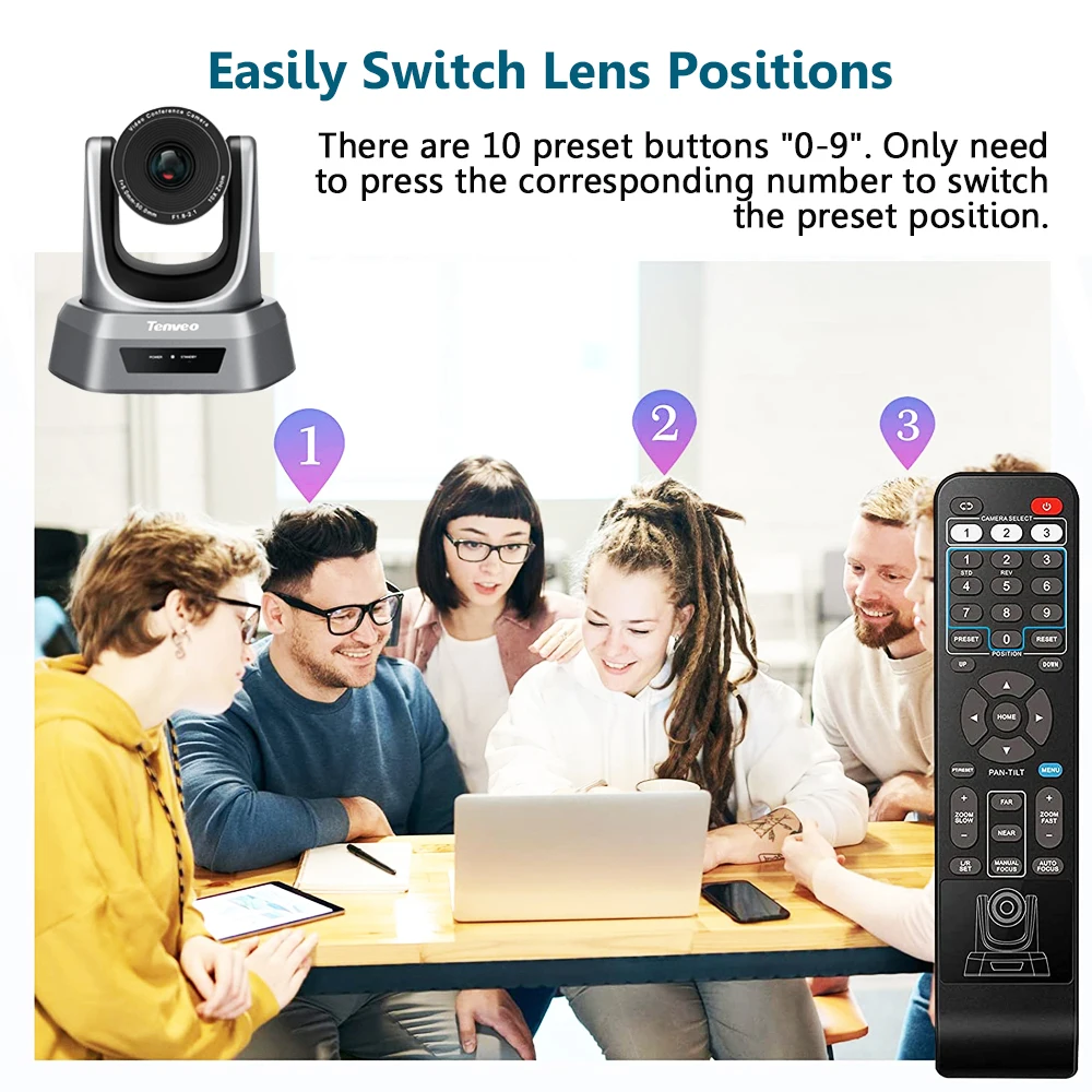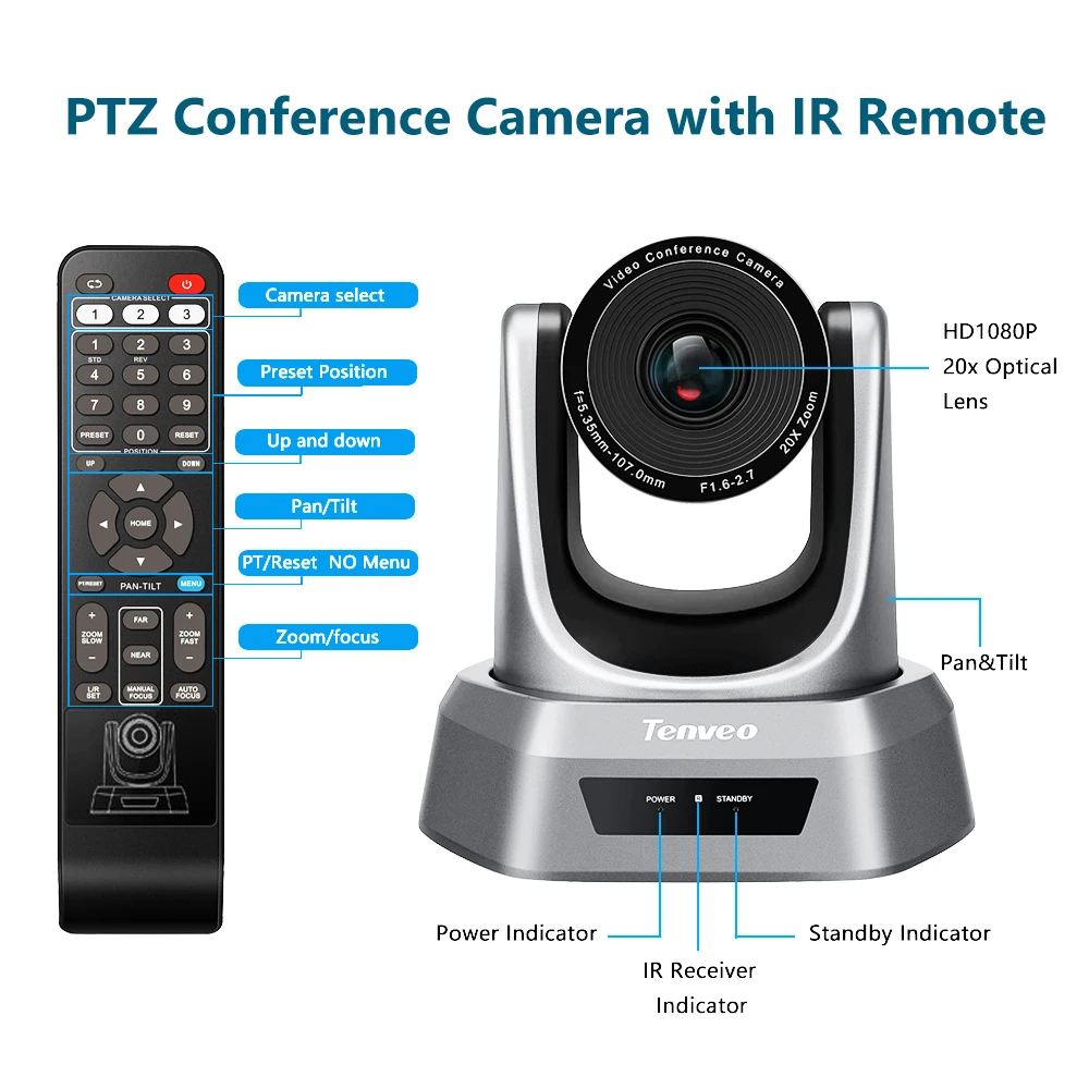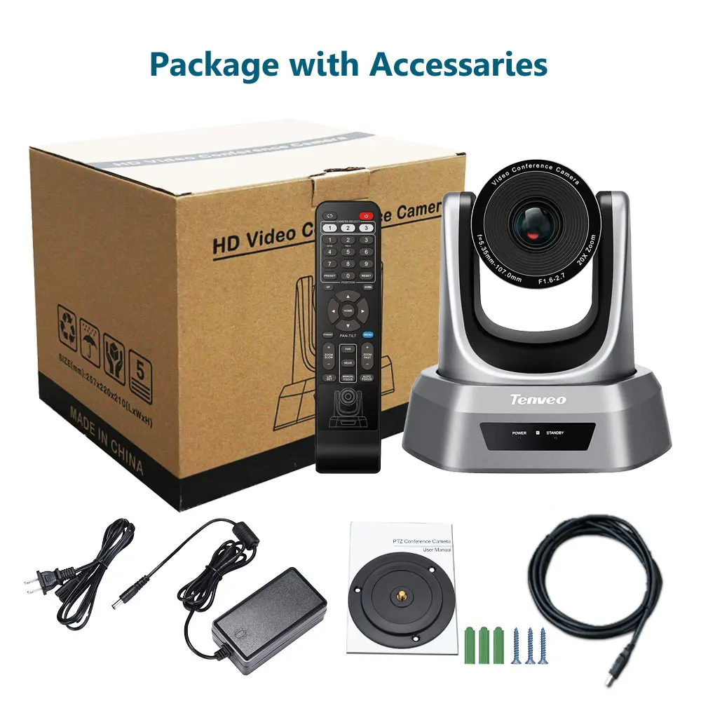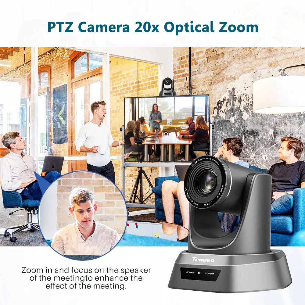 20X Optical Zoom PTZ Camera TENVEO Video Conference Room USB 1080P Camera System for Business Meeting Church Worship Services Online Learn, Works with Zoom, Skype OBS Easy to Set Up
