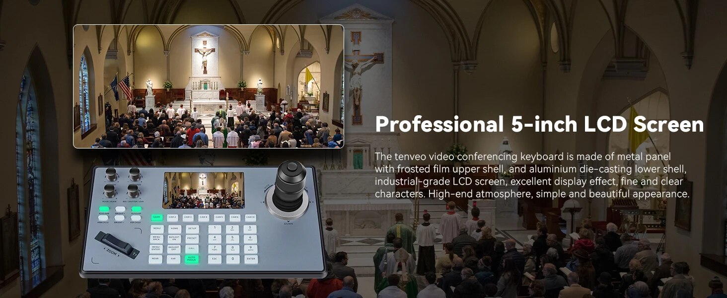 Tenveo PTZ Camera Joystick Controller, 5'' LCD Screen Real-time Preview 4D Joystick Conference Control Keyboard Support NDI PoE VISCA Pelco-D/P RS422/RS485 RS232 RJ45 For Church Live/Events/Streaming