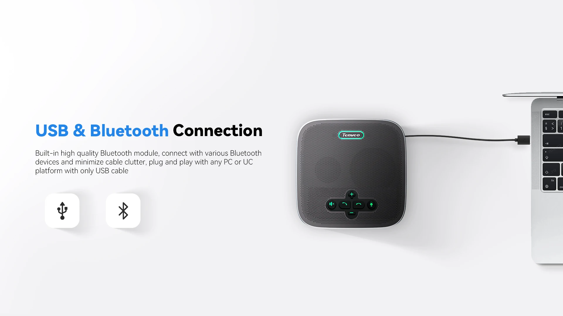* Support USB Type-C interface connection, plug and play* Works with UC, Video conferencing and cloud communication apps such as ZOOM, Vidyo, Webex, Skype for Business,