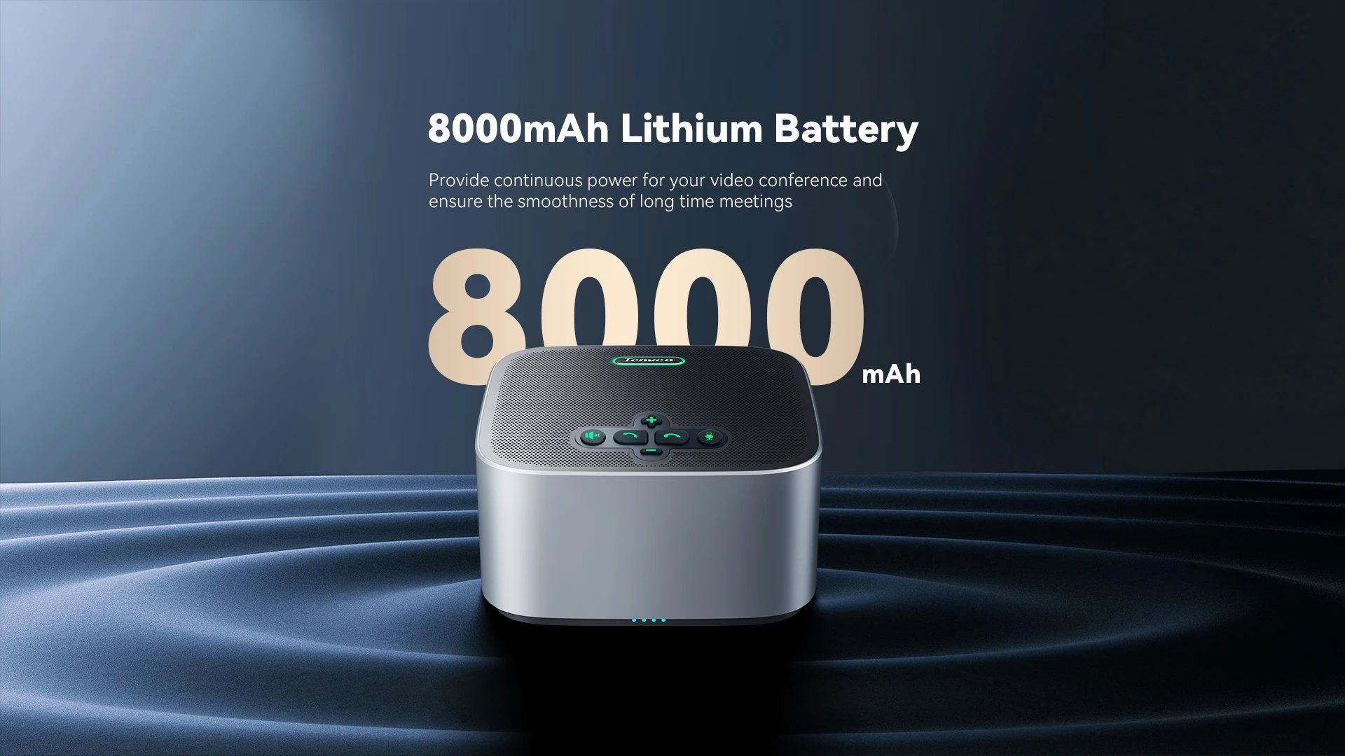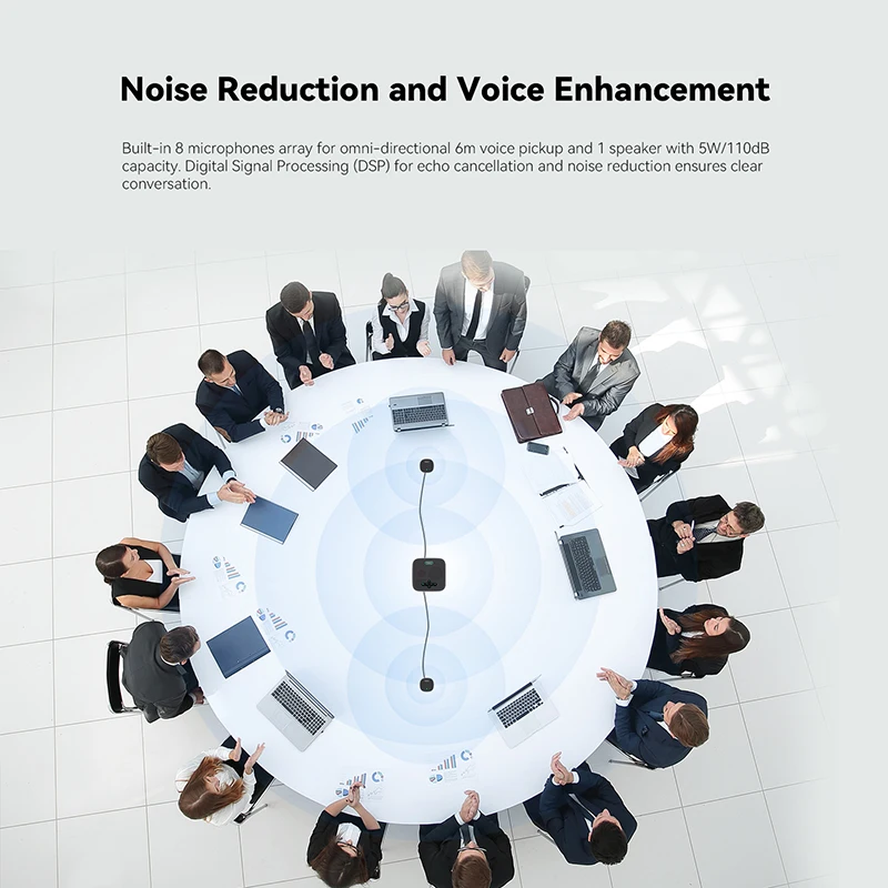 Blue tooth /USB connection, makes it easy to have a call. Built in 8000mAh battery ultra-long standby time and play hours. Suitable for meeting rooms within 40 square meters, supports online meetings with about 12 participants.