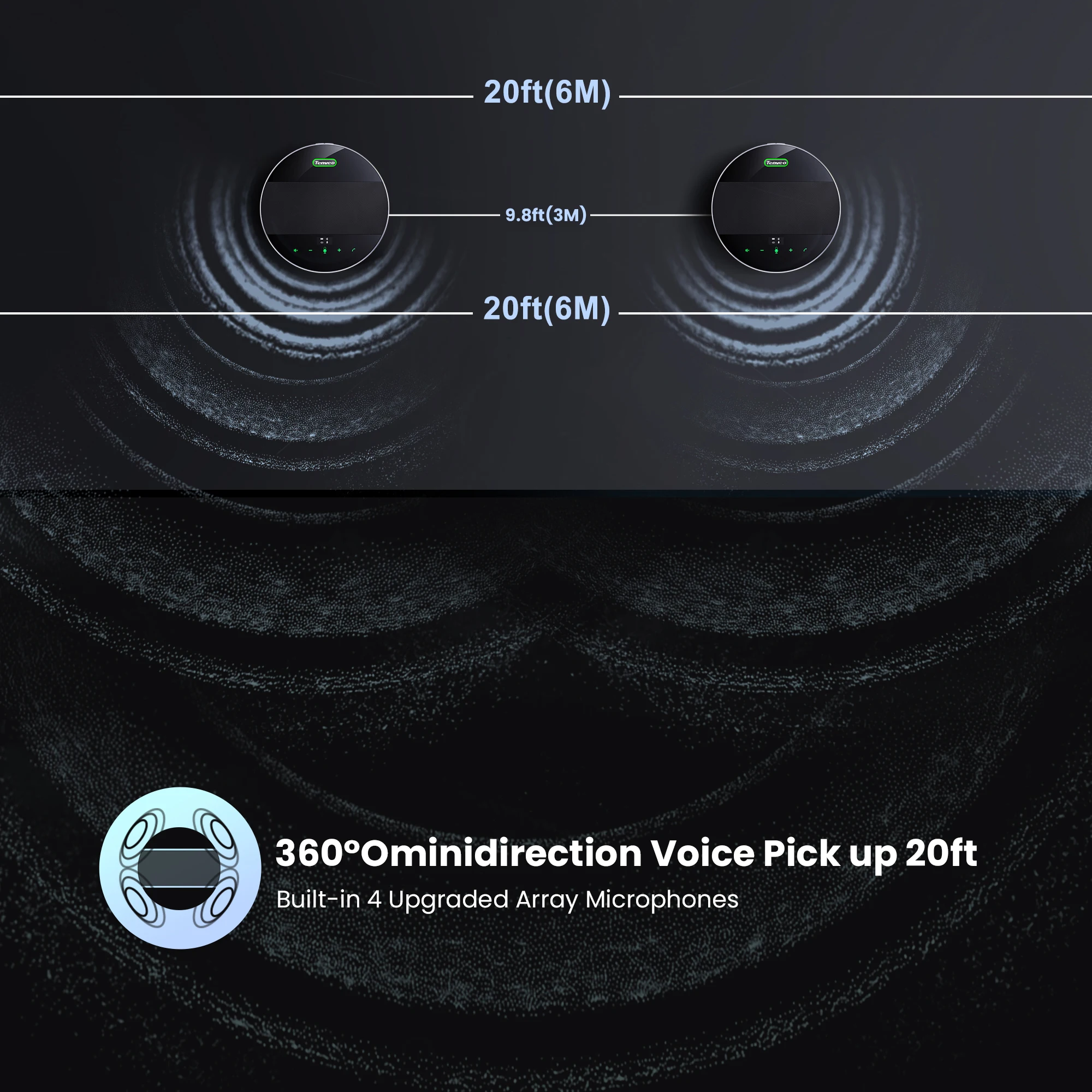 Built in 8 professional silicon microphones enables the pick up range reach 9 meters.It can present you with a high-definition and