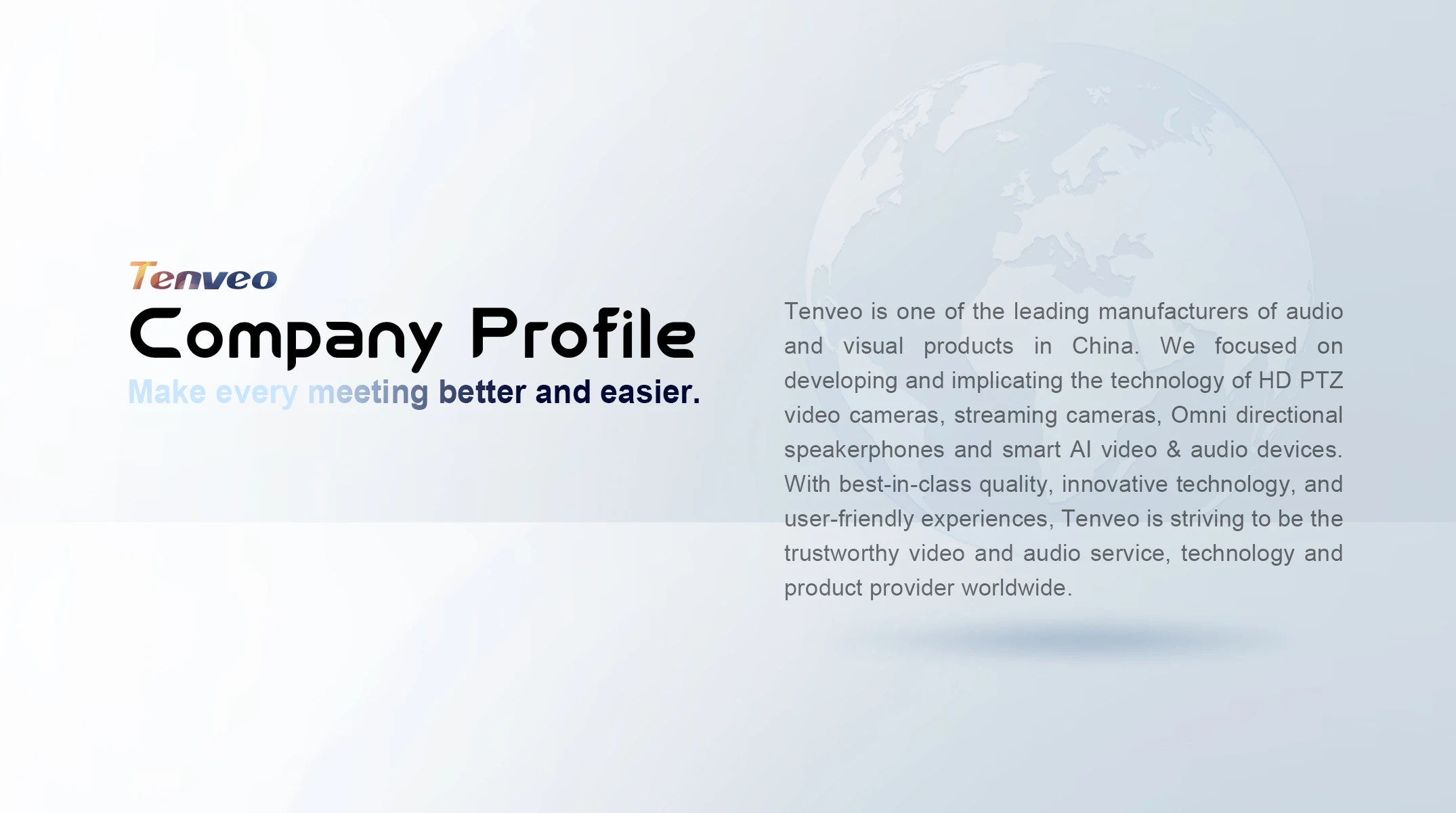 A: It depends on your meeting room spaces, we provide entry-level cameras for huddle rooms,and we also provide 3x, 10x, 20x and 30x PTZ cameras for larger meeting rooms.