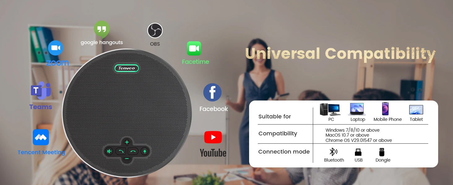 Hot Tags: Tenveo NEW Microphone USB Bluetooth Wireless 6 Meters 360 Degree Pickup Range Conference Speakerphone, China, manufacturers, wholesale, price, low price, made in China